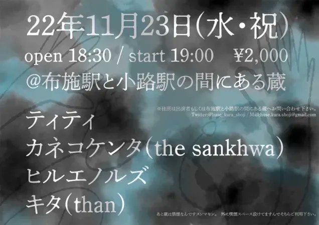 ※住所は出演者もしくは布施駅と小路駅の間にある蔵へお問い合わせ下さい。